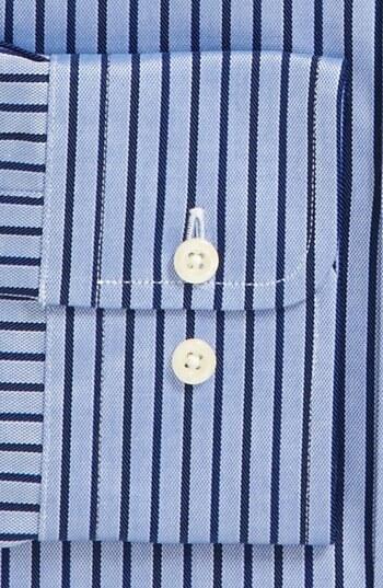 Herre langærmet skjorte i top kvalitets bomuld. Lyseblå med mørkeblå striber.